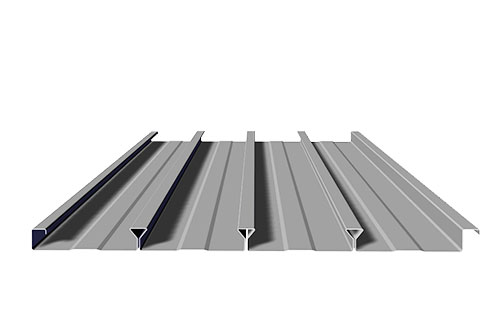 四、閉口型壓型金屬板選用S410GD級別的結構用熱鍍鋅、熱鍍鋁鋅或彩涂板,其屈服強度取值為410 N/mm'或取樣由拉伸試驗確定。